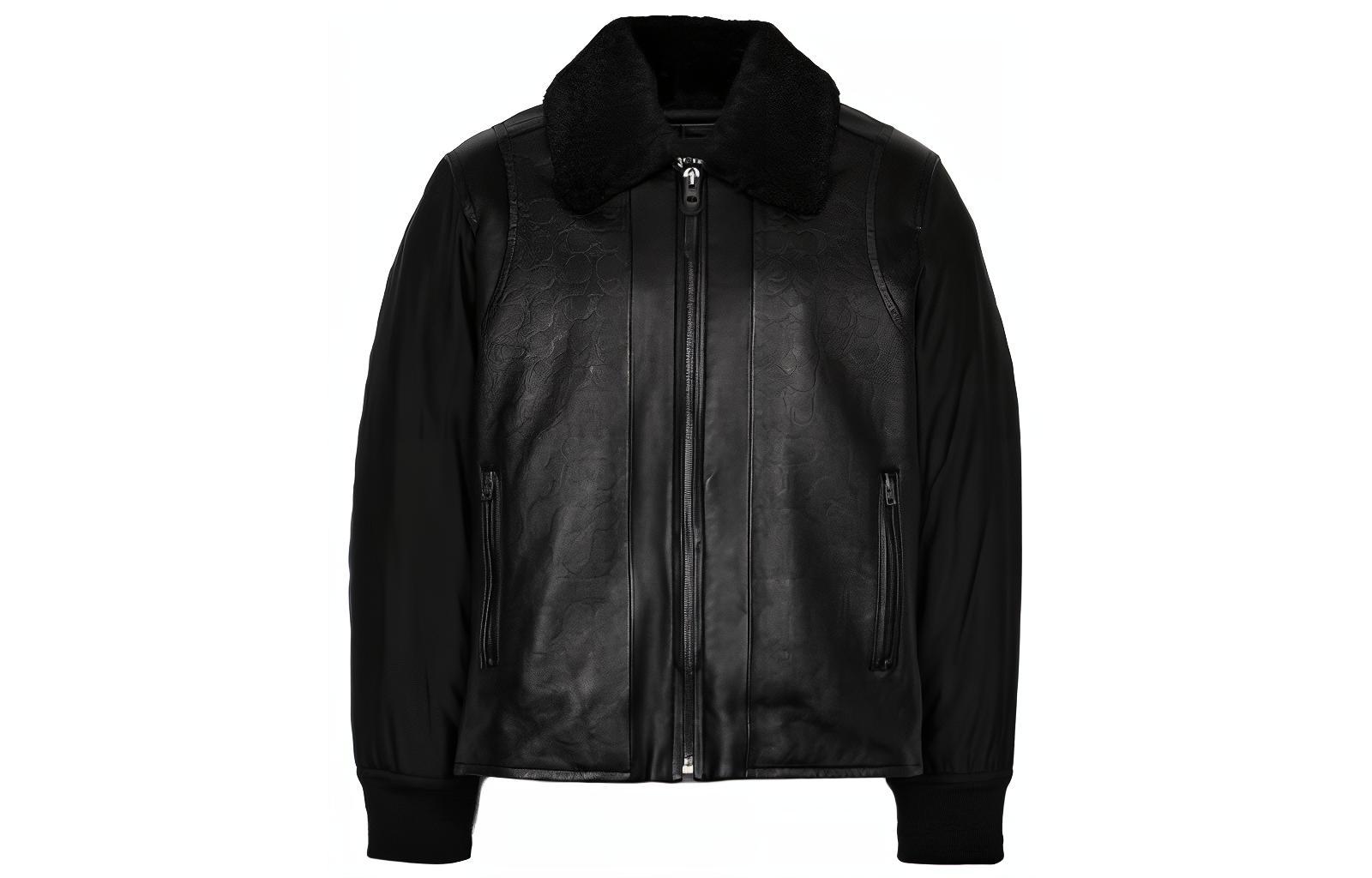 COACH Solid Black Long Sleeve Casual Jacket with Chain Collar Design C6383-BLK