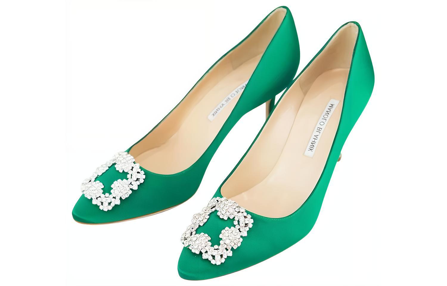 (W) Manolo Blahnik Hangisi 绿色水晶扣高跟鞋 9XX-0316-0047