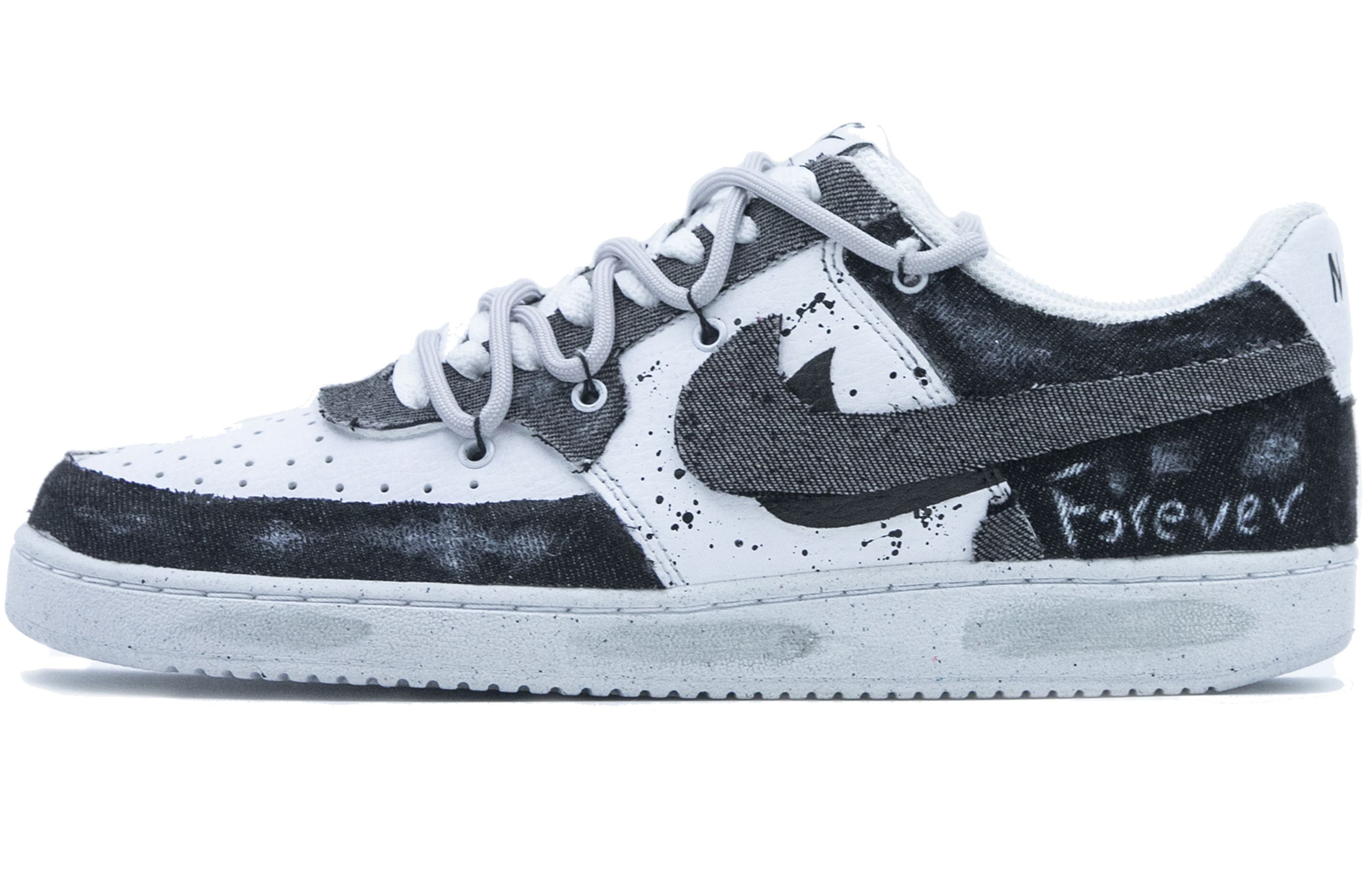 【訂製球鞋】Nike Court Vision 1 丹寧牛仔 字母 塗鴉 街頭 潑墨做舊 貼布 防滑耐磨 低幫 板鞋 男款 黑白