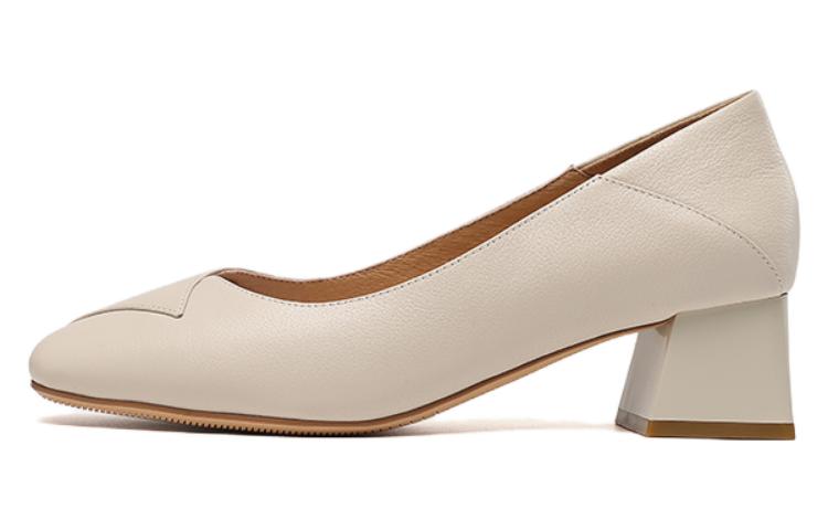奧康AOKANG 頭層牛皮 時尚方頭套腳 休閒單鞋 女款 米色