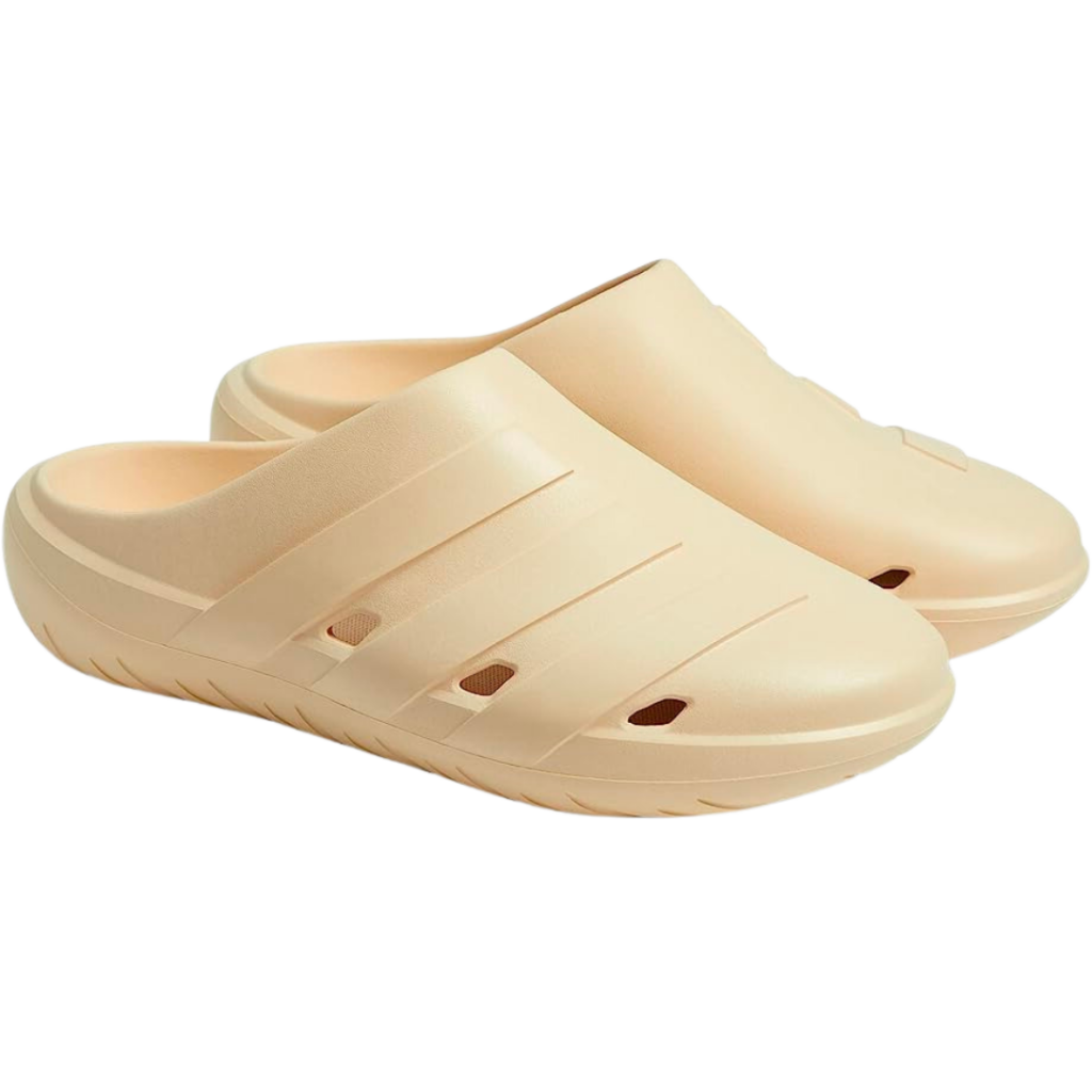 Adidas 半包式懶人鞋,平滑鞋面及簡潔造型相當符合現今潮流趨勢。側面透氣孔也確保腳部涼爽舒適。是你夏日進行各種水上活動的好夥伴。