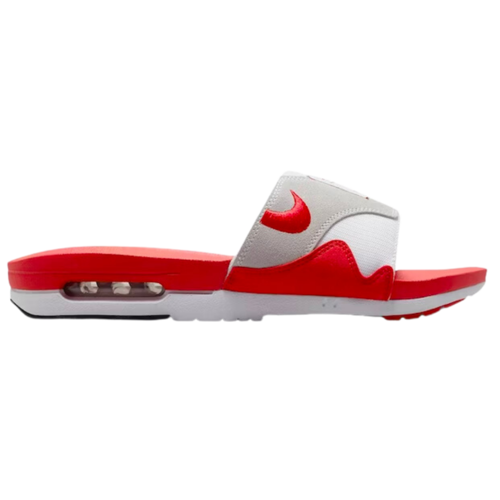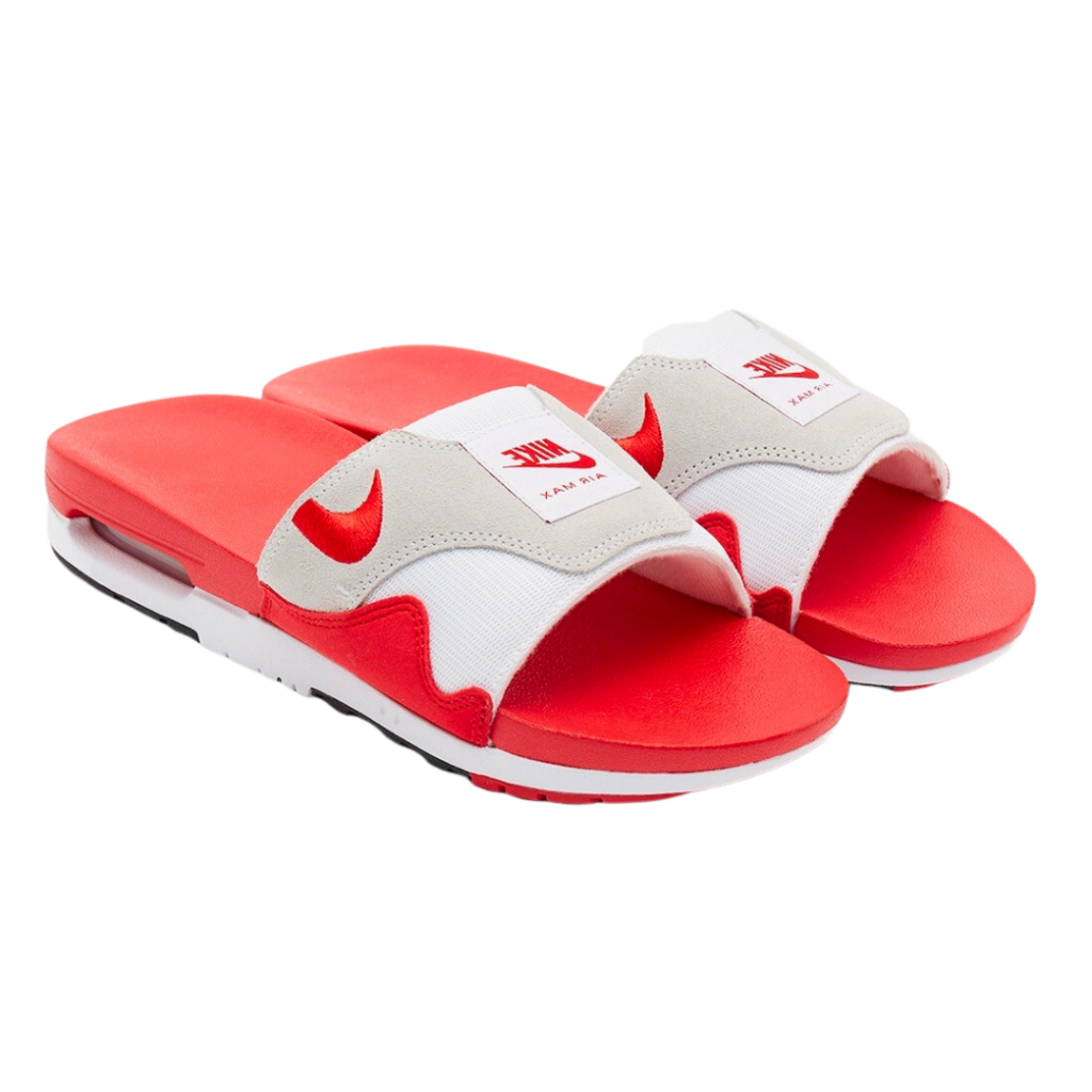 Air Max 1 變體拖鞋新亮相!Air Max 1 經典紅白配色融合網眼和絨布鞋面。最大亮點的 Air 氣墊也完美移植,提供拖鞋絕佳腳感。喜愛 Air Max 的你絕不能錯過!