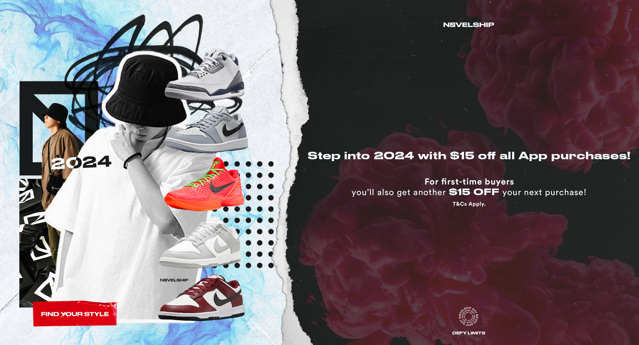 From 1 Jan – 2 Jan 2024, any first-time buyers who using code NSJAN will get an extra AUD$15/NZD$15 off voucher in your account(The given extra voucher is only valid for “Buy Now” orders through our Novelship App until 31 Jan 2024).