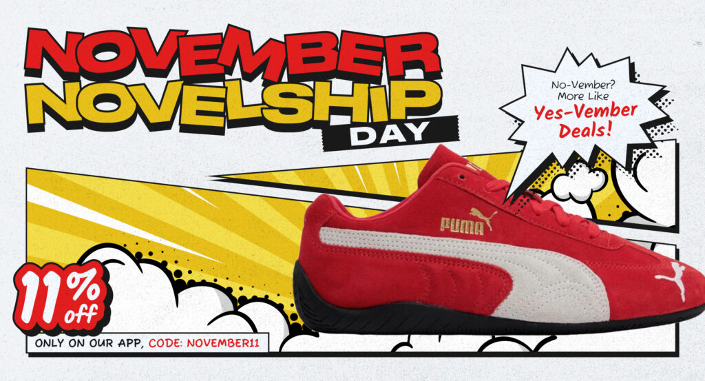 From 10 – 11 November 2024, all members can get 11% off only through our Novelship app by using code NOVEMBER11 for orders with SG$200/ RM650/ NT$4,900/ AU$200/ NZ$200/ US$200/ HK$1,200/ ₱8,600/ Rp 2,400,000/ £115/ CA$200 min. spend (This code is valid for a single use per user and is applicable only to “Buy Now” orders).
