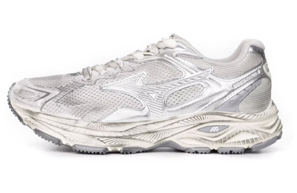 The Mizuno Racer S ‘White Metallic Silver’ is an excellent choice for those who prefer the rugged aesthetic. While it’s primary purpose is for running, it’s chunky appearance is also eye-grabbing, complementing avant-gardeesque looks. The bright combination of white and metallic gives it a sleek, modern look that will definitely turn heads. A brilliant (and much more affordable) alternative if you can’t afford the Balenciaga Track Runners.