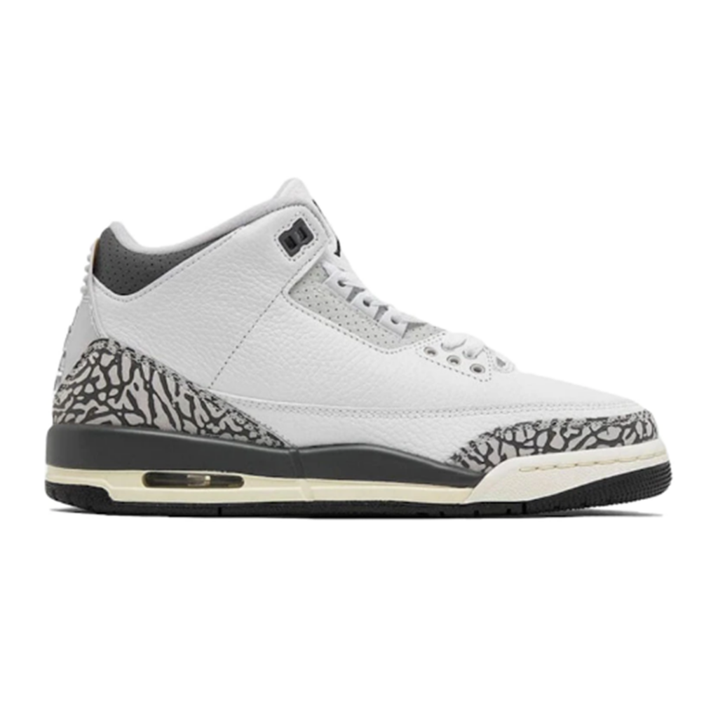 We have something for the young ones too! The Air Jordan 3 ‘Hide n Sneak’ (GS) is a playful iteration of a beloved classic, designed specifically for the younger sneaker enthusiasts. This shoe features an eye-catching camouflage pattern on the upper, offering a striking contrast against the iconic elephant print overlays. The ‘Hide n Sneak’ is a bold statement piece that allows the younger generation to stand out and express their unique style.