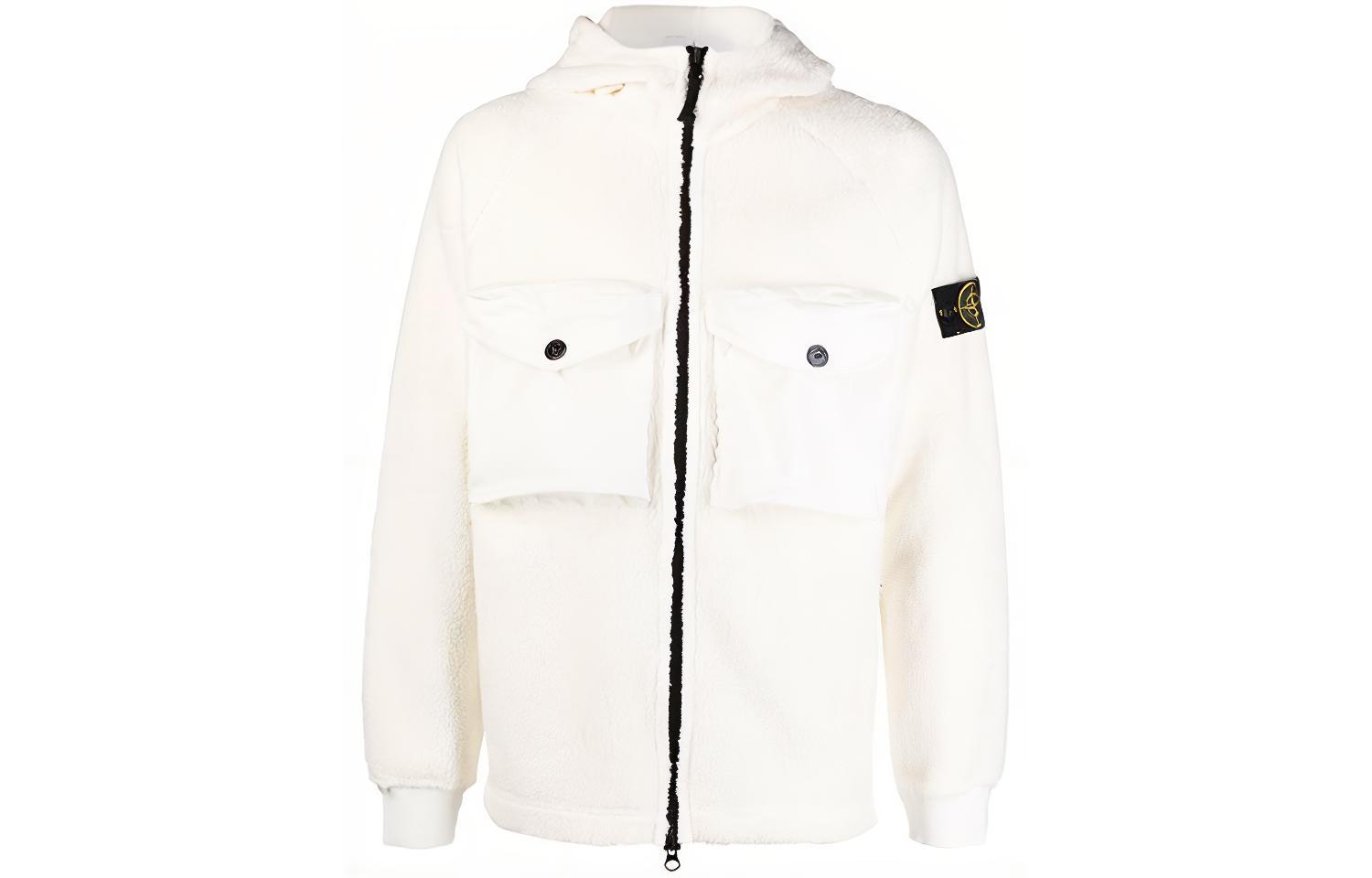 Stone Island FW21 Logo Patch Sherpa Fleece Hooded Jacket White Men’s Outerwear 751560134-V0001