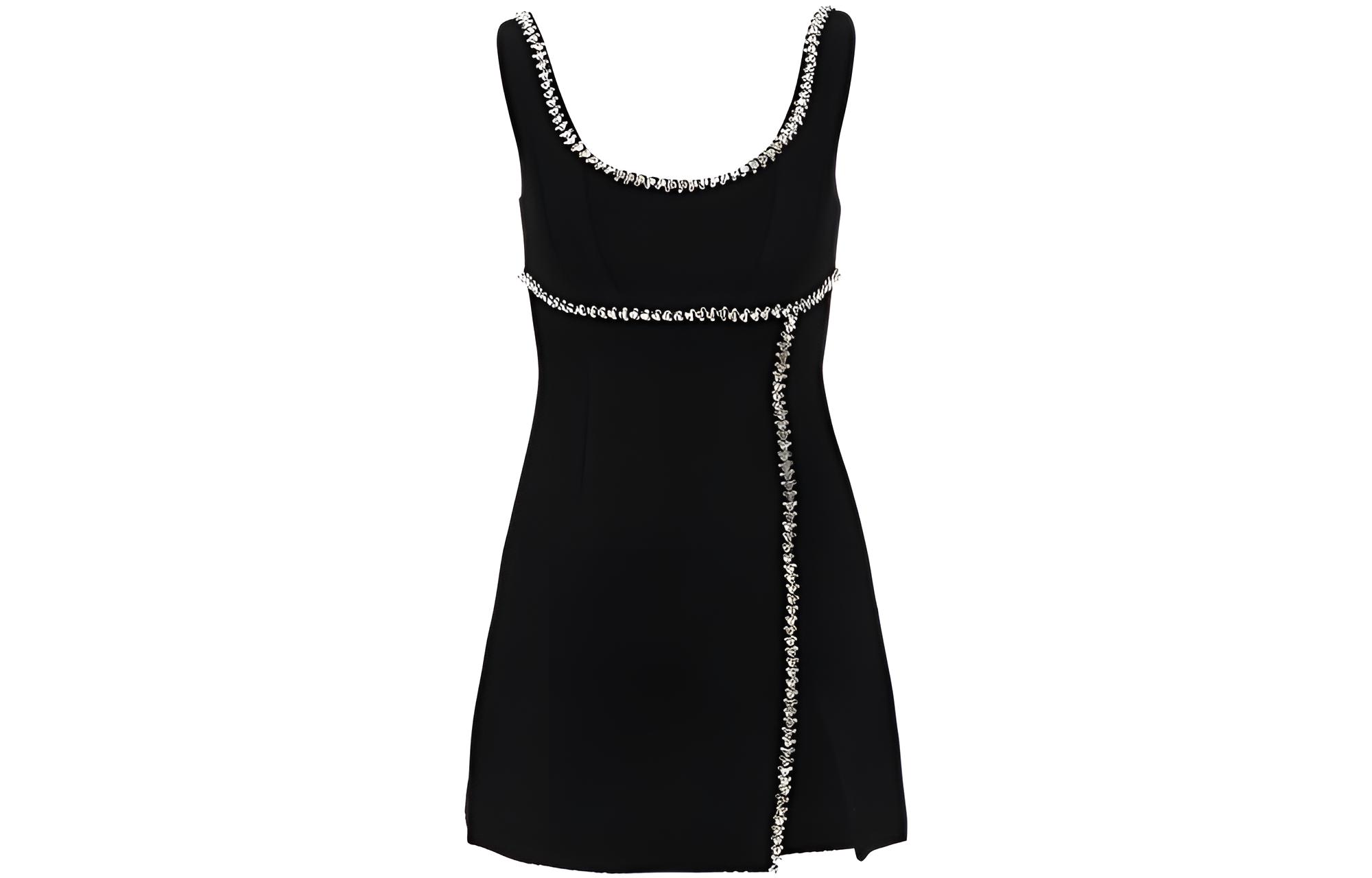 (Women) Self-Portrait Black Sleeveless Slim Fit Rhinestone A-Line Dress. SWF344Y20500