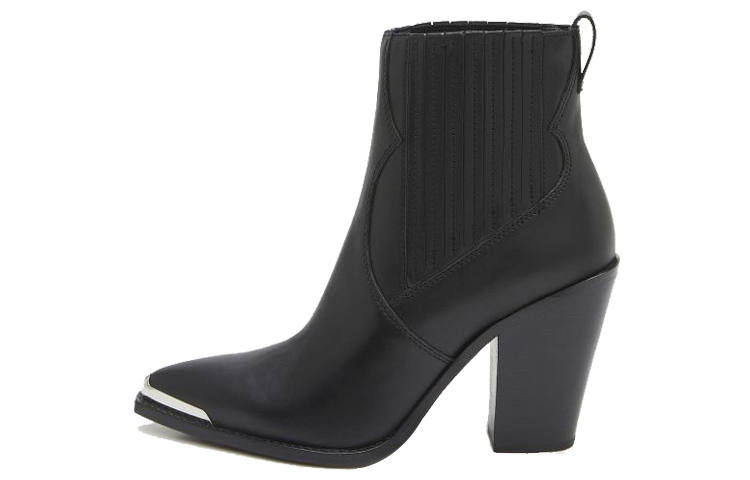 ASH 保暖增高防滑粗跟光滑皮革短靴 女款 黑色