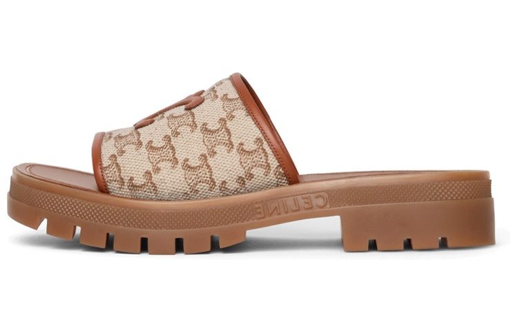 CELINE賽琳 織物 標誌印花 時尚涼拖 女款 棕色