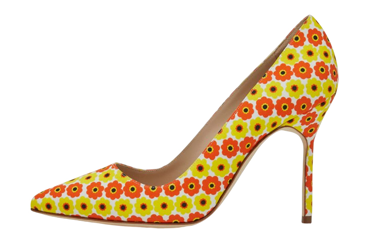 MANOLO BLAHNIK 棉質花卉尖頭高跟鞋 女款 黃色